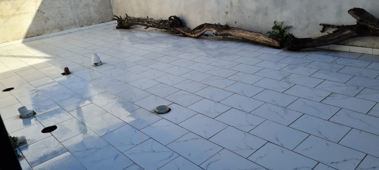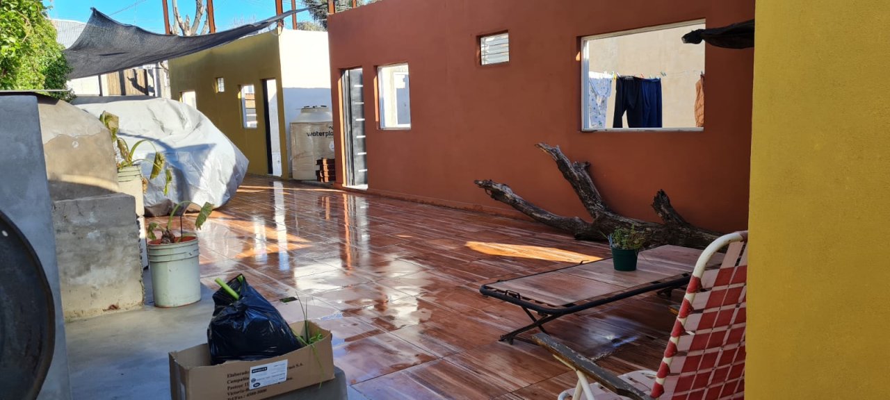 Casa de tres ambientes de 48m2 estructuras de ladrillo común, divisiones en durlock y sala vidriada.