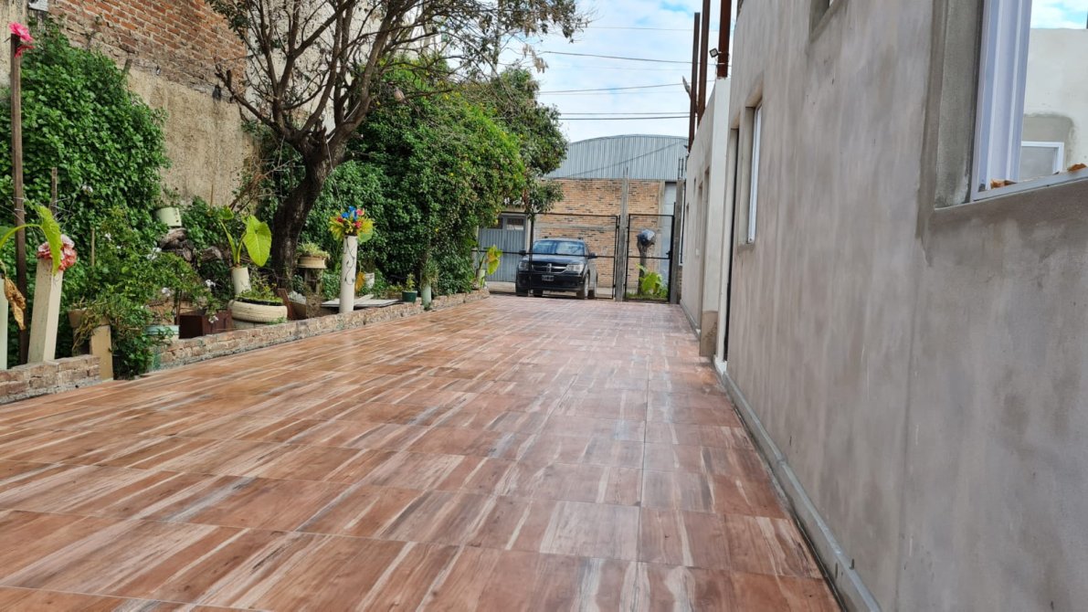 El inmueble está compuesto por: en el ingreso verja de ladrillo común y herrería, con portón de estructura de hierro y terminaciones en madera. Amplio espacio descubierto para ingreso de hasta 3 vehículos, con sector parrillero de uso en común. Mismo sector contempla 3 unidades mono ambiente amplios con sus aberturas e instalaciones de desagüe; las mismas (a terminar). Construcción preparada para ampliación en altura.